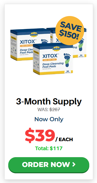At this moment you can order Xitox Foot Pads supplement for 64% OFF + FREE Shipping. This is a Limited-Time Offer and it won’t be available for long.